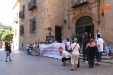 La Plataforma Stop Desahucios ha realizado este jueves sendas concentraciones a las puertas del Banco Santander, en la plaza del Liceo, y junto a la entrada de la sede central de Caja Duero. La plataforma pide que ambas entidades financieras dialoguen, negocien y lleguen a un acuerdo con dos de los afectados por desahucios, Queen Jona y Francisco García.