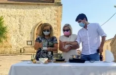 Sergio Fernández con Eli e Isabel, vecinas de Rollán. Foto: AytoRollan