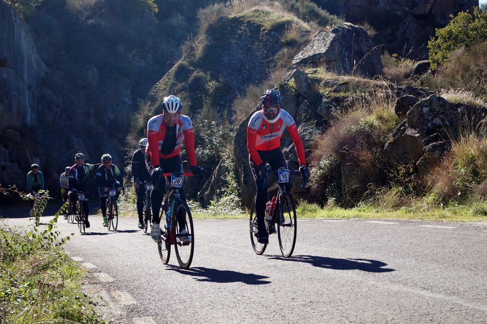 Tras llegar desperdigados a la zona de Aldeaduero comenzamos a subir las eternas rampas del puerto de Saucelle, en el que comenzamos a coger altura rápidamente y a dar vista a las trabajadas Arribes portuguesas, repletas de viñedos que van perdiendo sus hojas, y al río Duero. Después de retorcernos en las curvas, en las que la carretera se enrosca como un sacacorchos, el puerto se va haciendo más llevadero y finalmente llegamos a la cima. Todavía quedan los casi 10 kilómetros finales, que se hacen muy duros, siempre con el aire de cara y en ligera subida. Y cruzada la meta, nos tenían preparada una paella a todos los participantes, en la que intercambiamos impresiones de la carrera y repusimos fuerzas.