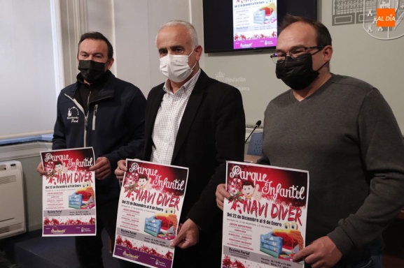El diputado de Deportes, Jesús María Ortiz, y representantes de la empresa Divertilandia, ha presentado este viernes la nueva edición de la Actividad Infantil Navidiver, que se celebrará en el pabellón central del Recinto Ferial de la Diputación, desde el miércoles 22 de diciembre hasta domingo 9 de enero, coincidiendo con las vacaciones escolares.