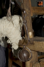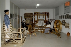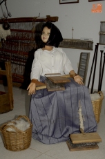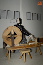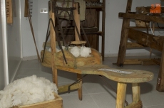 "El espacio que se recreó escenificaba todas y cada una de las fases de transformación de la lana, desde el cardado tras la motila a la fabricación de prendas, además de varios artilugios que se usaban para su confección, incluso aquí se tejió el lino para hacer piezas de ajuar", añade Robledo.