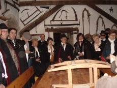 El alcalde de Astudillo, municipio declarado Conjunto Histórico Artistico, les recibió en el centro cultural de la localidad donde recibieron unos pergaminos que les hermanaban a los paletinos y también a los de Santiago la Puebla.