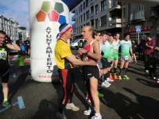 Amaneció la ciudad con una temperatura espléndida, pasado ya el lluvioso día anterior, que auguraba una gran jornada deportiva, como así fue. La cita, para los 294 participantes inscritos era a las 10.30 horas en el centro de la población, aunque grupos de atletas llevaban ya rato calentando y pintando de colores los aledaños de la pancarta de salida. Nervios a flor de piel se mezclaban con emocionantes reencuentros, todos se daban ánimos y todos estaban deseosos por comenzar.