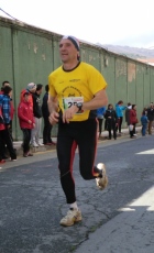 Puntual a la hora fijada salio el primer participante, Vicente Martín del Club de Veteranos de Salamanca, 47 años y su primera cita en Béjar, su tiempo 1H 46' 30'', dicen los otros participantes que alucinaban viéndole subir las empinadas cuestas del recorrido. Salio él solo porque participaba montado sobre su silla de ruedas adaptada, un magnífico atleta con el que tuvimos ocasión de departir al final de la prueba y que nos hablo sobre la dureza de la misma, también nos comento cómo su calendario de participación era intenso, que la siguiente cita era el 27 de abril en la maratón de Madrid.