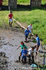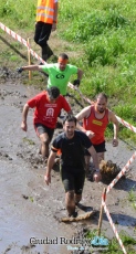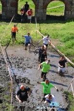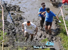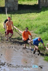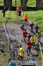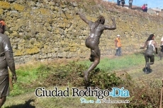 El tramo final era uno de los más espectaculares. Para empezar, junto al foso del cuerpo de guardia de San Pelayo se creó una zona totalmente embarrada, en la que algunos de los participantes se lo pasaron como niños, llegando alguno de ellos a tirarse 'a bomba'. Otros, tras completar la prueba (sin apenas barro en el cuerpo), decidieron volver a la zona para embarrarse por completo (incluso con doble pasada). Por cierto, que esa zona fue el 'cementerio' de unas cuantas zapatillas que quedaron allí perdidas.