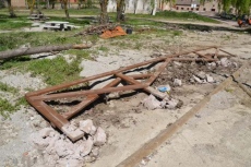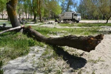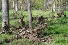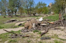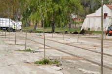 De igual forma, el agua arrancó unos cuantos listones de los que delimitan las plazas de aparcamiento del parking, y se llevó varios árboles, aunque no demasiados ('únicamente' 8). Esto es debido a que los árboles todavía conservan la tierra más compacta entre sus raíces de cuando se plantaron, lo que hace más difícil arrancarlos.
