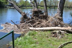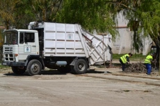 En primer lugar, ha tocado retirar todas las ramas, troncos y arbustos que la corriente del río dejó depositados allí atrapados en otros árboles o en elementos como la propia valla del parking. Para recogerlos, hasta el lugar acudió un camión de la empresa responsable de la recogida de basura, Urbaser.