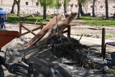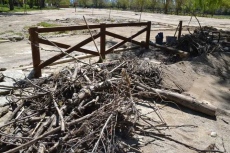 Asimismo, ya se han iniciado los trabajos con el vallado exterior de la zona. Como se puede ver en alguna de las imágenes -y exceptuando algún listón concreto que la fuerza del agua llegó a romper-, las vallas que fueron arrancadas han quedado unidas en bloque. Esas vallas se están separando, quitando los clavos, para proceder a trasladarlas desmontadas, y poner a punto de nuevo la instalación antes de su nueva colocación en la zona (para la que habrá que rehacer unos cuantos agujeros).