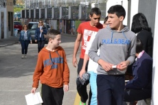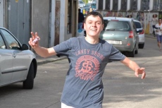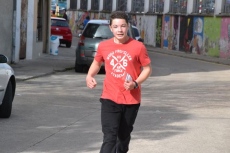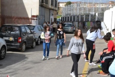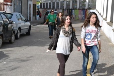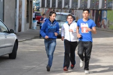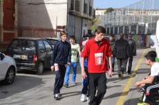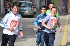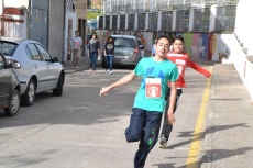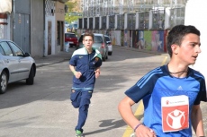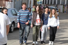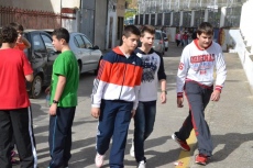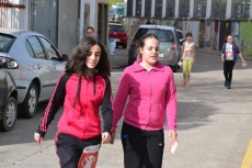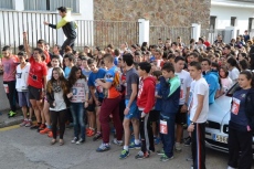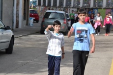 Allí, los chavales que se habían inscrito (la práctica totalidad de alumnos del IES, excepto los de 2º de Ciclos Formativos, que están haciendo las prácticas) pasaron a recoger los dorsales por los puntos donde estaban situados algunos de sus compañeros de clase, para salir posteriormente a la calle Escuelas e iniciar la marcha, en dirección a la Ronda de San Pelayo.