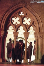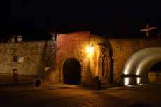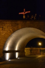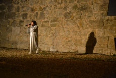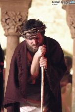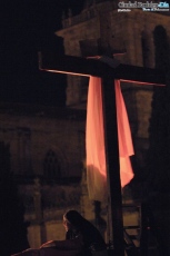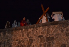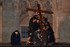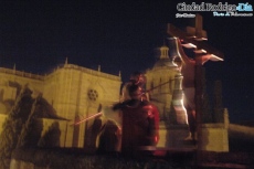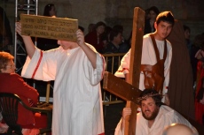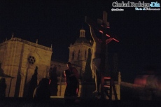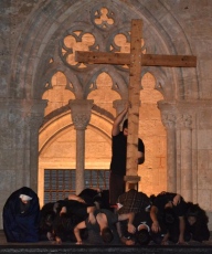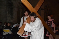Llegados al punto en que Poncio Pilato se lava las manos y deja al pueblo decidir sobre el futuro de Jesús, colocándole la cruz, comenzó la salida tanto de actores como de público desde el Claustro hacia la Puerta de Amayuelas, para desarrollar la parte final en la cual Jesús es crucificado junto a los dos ladrones.