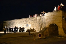 Por primera vez en los más de 20 años de representaciones de la Pasión, el tramo final de la misma se desarrolló en la zona de la muralla de la Puerta de Amayuelas, pudiendo ser seguida a pie de calle (en este caso desde la Avenida de Yurramendi) por varios cientos de personas que previamente habían llenado todas las sillas colocadas en el Claustro.