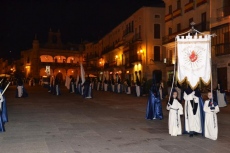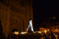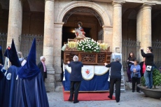 Tras recorrer la calle San Juan, la procesión giró hacia la Plazuela Cristóbal de Castillejo, para continuar por Campo de Pozo, Enrique Zarandieta, Rúa del Sol, y un nuevo paso por la Plaza Mayor, recorriéndola en esta ocasión al completo ?momento en el cual hizo una reflexión el capellán de la Junta Mayor de Semana Santa, Celso Martín Santos-. La comitiva abandonó el ágora por la calle Cardenal Pacheco para dirigirse a la Catedral de Santa María.
