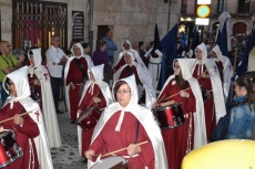 Con la imagen de la Virgen detenida a las puertas del Ayuntamiento, tuvo lugar uno de los momentos cumbre de la procesión: la saeta cantada por Lauren Risueño a la Virgen desde un balcón en la calle San Juan. La intervención fue muy aplaudida por los asistentes, quienes durante el resto de la procesión pudieron disfrutar de la animación musical de la Banda de Tambores de la Cofradía de la Santa Cruz.