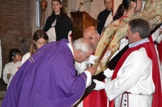 El besapiés tuvo lugar a la conclusión de una eucaristía oficiada en el citado templo por el párroco, Ángel Martín Carballo, quién es a su vez capellán de la Cofradía. Justo al acabar la misa, miembros de la Cofradía procedieron a bajar, mediante un sistema de poleas, la imagen del Cristo.