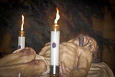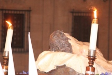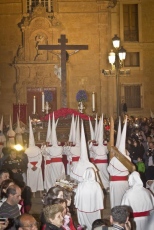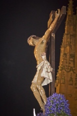 Todo es silencio. La noche enmudece al paso del Santísimo Cristo Yacente de la Misericordia, obra de Enrique Orejudo en 1991, y de la Agonía Redentora del siglo XVI, posiblemente la talla más antigua de la Semana Santa de Salamanca. Desde su salida de la catedral, pasando por su bajada por la calle Tostado, el desfile se convierte en un solemne acto de respeto al Cristo que agoniza o ya muerto.