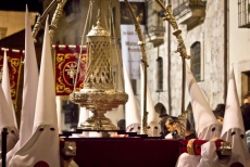 Cabe destacar un gran incensario portado a hombros de cofrades, una Cruz de Penitencia (antigua del Cristo de la Agonía) portada por uno de los hermanos, y las dos Imágenes Titulares portadas a hombros.