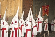 Previamente, los nazarenos, de la mano de sus responsables, han rezado en presencia del obispo de la diócesis, Carlos López, y el alcalde de Salamanca, Alfonso Fernández Mañueco, que se suma así al momento de oración previo al desfile procesional en la madrugada del Jueves Santo.