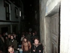 Los Cofrades atentos a las instrucciones de quienes trataban de dirigir a la multitud de encapuchados, quienes vela en ristre eran objeto de atención de los cientos de personas que no quisieron perderse el acto a lo largo de todo el recorrido