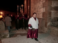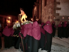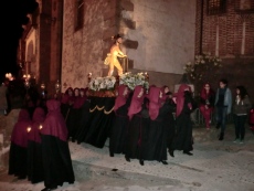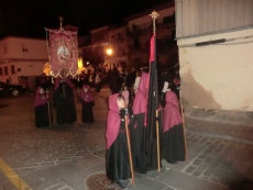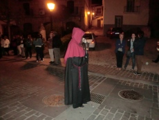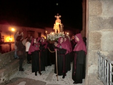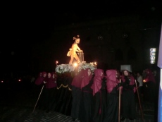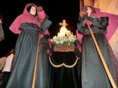 El buen tiempo está acentuando la participación de turistas en esta Semana Santa, quienes pudieron disfrutar de una procesión en la que la oscuridad de las calles daba al acto un halo de silencioso misterio, acrecentado por el movimiento de los devotos feligreses que seguían a la comitiva, estos si un poco más desordenados.