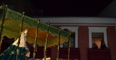 La cantante Sinfo Arroyo protagonizaba el momento mas emotivo de la noche al dedicarle una saeta a la imagen de Nuestra Señora de la Esperanza, lo que generaba una gran ovación entre el publico que se congregaba frente al balcón en el que se situaba la artista.