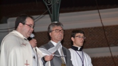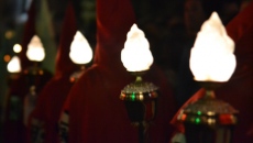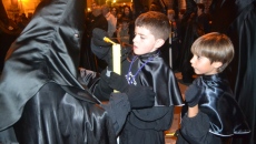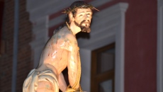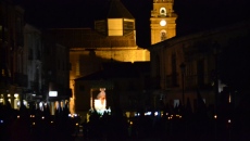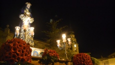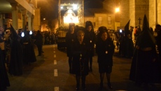 El momento de mayor recogimiento se vivía tras situarse las imágenes en los vértices del agora. En total oscuridad, Fernando García, uno de los párrocos de la ciudad, realizaba una breve lectura a la que siguió una oración que finalizaba con el inicio de las marchas procesionales que indicaban el regreso a la iglesia parroquial.