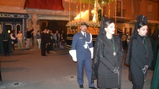 Pasadas las once y media de la noche, las diferentes comitivas pusieron rumbo hacia la plaza de España, lugar en el que se concentraba el acto principal. Desde la Ermita de San Luis partían las Cofradías de La Vera Cruz y Preciosa Sangre, mientras, y casi a la par, desde la Iglesia Parroquial San Miguel Arcángel hacían lo propio Nuestra Señora de la Esperanza, Cristo del Humilladero y Nuestra Señora de las Lagrimas, Jesús Nazareno y Nuestra Señora de la Soledad. Tras recorrer los diferentes caminos establecidos por la organización, y que se desarrollaron por buena parte del corazón de la ciudad, todos se daban cita frente al Templete.