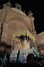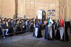 La "Esperanza" de miles de salmantinos. La más andaluza, la más arraigada entre los aficionados a los toros. La que obliga a madrugar a partir de las 5 de la mañana. Pasados 10 minutos comenzaba el cortejo llevando en andas las imágenes de Nuestro Padre Jesús de la Pasión, que estrena faldones bordados en el paso, Santísimo Cristo de la Buena Muerte, Nuestra Señora de los Dolores y Nuestra Señora de la Esperanza.