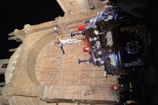 Desfila sobre andas de metal plateado estrenadas en 1998, fueron realizadas en el taller de orfebrería de Orovio de la Torre en Torralba de Calatrava (Ciudad Real).