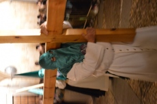 Los hermanos de paso no llevan capa, sustituyen el capirote por verdugos de raso del color correspondiente a la sección y el cíngulo por cordón simple del mismo color del verdugo.