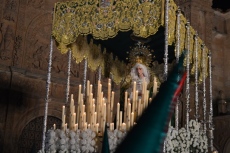 Desfila sobre andas de carga interior cuyos respiraderos se tallaron entre los años 2001 y 2011, habiéndose tomado para la canastilla las andas anteriores, regalo de la Seráfica Hermandad, decoradas con relieves en plata de las estaciones del Vía Crucis, provenientes del paso que portó a Ntra. Sra. de la Esperanza hasta 1989.