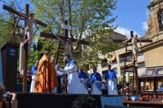 En la tarde soleada del Viernes Santo, ante cientos de salmantinos alrededor del Humilladero del Campo San Francisco, la Cofradía de la Vera Cruz ha celebrado el acto paralitúrgico del Descendimiento, presidido por el obispo de la Diócesis, Carlos López, que ha pedido recogimiento a la Hermandad.