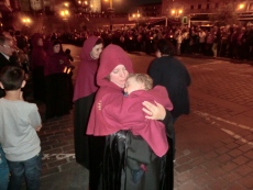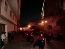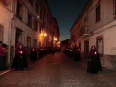 La comitiva salió a las 21:00 horas acompañada del párroco de Santa María y de la comitiva municipal, presidida por el alcalde Alejo Riñones, siguiendo un estricto tempo en la marcha dirigido por las instrucciones de cofrades elegidos a tal efecto y por el ritmo marcado por el numeroso grupo de tambores, algunos de ellos jovencísimos músicos.
