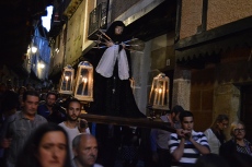 La procesión de la Soledad vuelve a llenar de solemnidad y recogimiento las calles. El silencio sólo es roto por los pasos en el empedrado. Este es el único día del calendario litúrgico católico donde no se celebra la Misa, como luto por la muerte del Señor. Las campanas permanecen mudas.