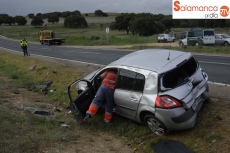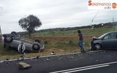 Uno de los conductores se vio sorprendido por unos perros que cruzaron la carretera por lo que tuvo que frenar de manera repentina, según ha podido saber SalamancaRTV al DÍA por testigos presenciales. El segundo automóvil implicado en el accidente chocó con el primero al intentar evitar la colisión.