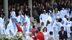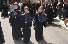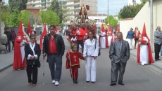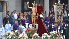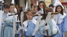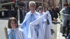 Tras recorrer varias calles del corazón de la ciudad, llegaban hasta el agora donde, tras una breve oración, el pequeño convertido en San Miguel, recitaba con gracia la letanía que anuncia la resurrección, momento que era acompañado por una sonora ovación por parte de la multitud de vecinos que se agolpaban en los alrededores de la plaza.
