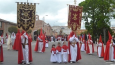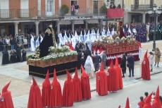 La procesión del Resucitado ha puesto punto y final a la Semana Santa en Peñaranda. Cientos de personas se daban cita durante la mañana del domingo en la Plaza de la Constitución para asistir a uno de los momentos de mayor intensidad de la semana como es el encuentro entre Jesús Resucitado y Nuestra Señora de la Soledad, en el que un pequeño ataviado como el Arcángel San Miguel anuncia la resurrección y procede a desprender el manto de luto que hasta ese momento ha vestido la virgen.