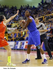 Poco a poco, sobre todo con la salida a pista de Krystal, fueron bajando el nivel las azulonas, que empezaron a ver acercarse peligrosamente a las comandas por Halvarsson, que empezó a ganar la partida por dentro. Todo el duelo se jugó ahí, en el rebote. Las pívots fueron imprescindibles para que sus equipos se sintieran cómodos. Las salmantinas perdieron protagonismo en la suya y sólo se llevaron uno de ventaja al segundo cuarto (15-14).