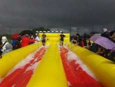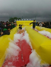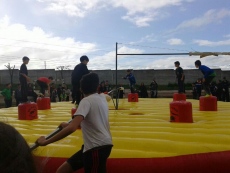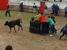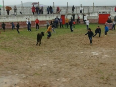 La jornada continuó con las divertidas pruebas de Humor Amarillo, durante las cuales salió por fin el sol. Como cierre del día, se soltaron de nuevo las vaquillas en la plaza, y se realizó una foto de familia de todos los chavales participantes.