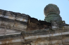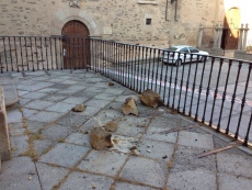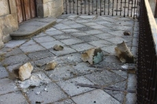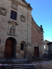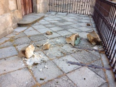 Susto mayúsculo con el que han despertado los vecinos de Alba de Tormes el día después de la celebración del IV Centenario de la Beatificación de Santa Teresa. Un bloque de piedra de la cornisa de la iglesia de la Anunciación se ha desprendido, justo en uno de las zonas que más gente aglutina durante las procesiones de Santa Teresa.