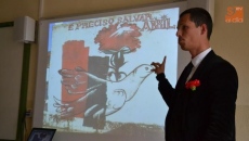 Este viernes 25 de abril se cumplieron cuatro décadas de la Revolución de los Claveles que cambió la historia de Portugal. La Sección de Ciudad Rodrigo de la Escuela Oficial de Idiomas de Salamanca se sumó en la tarde del viernes a la efeméride recibiendo la visita del escritor y profesor portugués Hugo Milhanas Machado.
