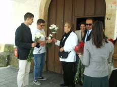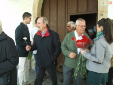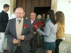 Claveles rojos para ellos, blancos para ellas. Vega de Tirados homenajea a sus mayores en la jornada dominical de sus fiestas patronales. Jornada que arrancó con la Santa Misa, acompañada de tamborilero. A la salida de la iglesia, todos los mayores reciben su correspondiente clavel, un pequeño detalle que se ha convertido en tradición. Y ellos han seguido siendo los protagonistas en la entrega de placas, con las que el Ayuntamiento rinde un homenaje a sus vecinos de más edad. Placas que este han recaído este año en José María Moreno, Isabel Martín y la centenaria Teresa Núñez, con 102 años cumplidos, (en estos dos últimos casos, las placas fueron recogidas por sus familiares).
