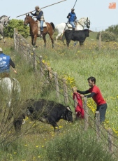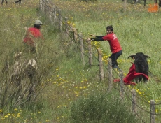 Eso sí, durante el encierro hubo que destacar una pelea: mientras estaban pasando los astados guiados por unos cuantos caballistas, un recortador 'a pie' se enfrentó con un caballista, porque uno quería llamar a los animales, y el otro evitarlo. La pelea llegó a tal punto que fue necesaria la intervención de varios presentes para separar a esas dos personas.
