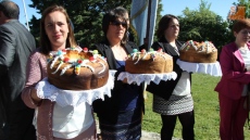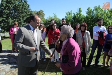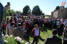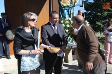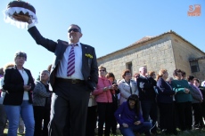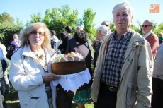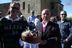 Con la Virgen colocada en su trono de piedra, este año revestido con una cubierta de hierro gracias al Plan Románico, decenas de vecinos besaron las varas ofrecidas por los mayordomos en el ofertorio a Nuestra Señora, acto que daría paso a la esperada subasta de roscas.