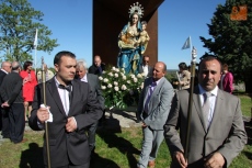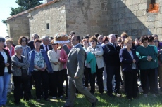 Y allí comenzaba la tarde con el rosario y la salida a hombros de la Virgen, con pendón anunciador y bajo los sones de la gaita y el tamboril de Arcadio, procesión que abrían las rosquilleras y que escoltaban los trajeados mayordomos con varas en mano. Tras la Virgen, aparecían sus dos mayordomas con relucientes vestidos de fiesta.