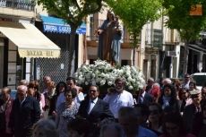 Para empezar, se ofició una Eucaristía, presidida por el párroco Rafael Caño. Frente a las dos habituales misas de la mañana del domingo en el templo, en este caso fue la única misa de la mañana, por lo que hubo más asistentes de lo habitual. Justo a la conclusión, tuvo lugar la última sesión de la novena en honor a la Virgen de los Remedios que se ha venido celebrando desde el pasado sábado 26 de abril.
