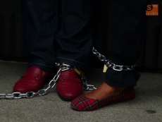 Cerca de una docena de vecinos de Brincones se han encadenado esta mañana a la puerta de la Gerencia Territorial de Salud, en la avenida de Mirat, con el fin de reclamar, una vez más, el mantenimiento del médico que atiende a las localidades de Ahigal de Villarino, Puertas, Manceras, El Groo, Iruelos y Cerezal de Puertas, además de Brincones.