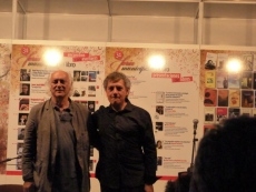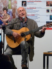 La palabra del poeta Juan Carlos Mestre y la música de Amancio Prada arroparon este miércoles la feria del libro. Canciones de siempre y poemas de estos tiempos, que son los de siempre, se colaron por entre los libros y el salón de actos de la feria, lleno a reventar para ver a dos grandes creadores.