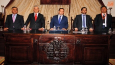Al acto asistieron, además del vicerrector de Investigación y Transferencia, el director territorial de Castilla y León del Banco Santander, Carlos Ranera González; el vicepresidente de Empresa Familiar Castilla y León, César Pontvianne; el socio director de PwC, Fernando Martínez Maestre; y el director del máster, Julio Pindado.