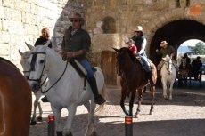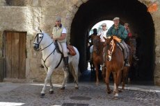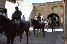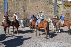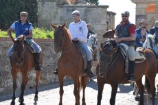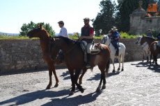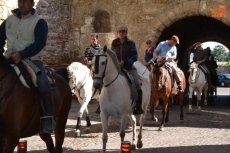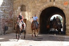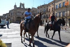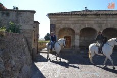 El inicio de la Ruta en el Registro es debido a que allí está el espacio de Ciudad Rodrigo que forma parte de la Ruta de las Fortificaciones de Frontera: el Cuerpo de Guardia. Hecha la preceptiva foto de familia, los caballistas tomaron la calle Madrid para atravesar la Plaza Mayor, y continuar por la calle Colada, por donde abandonaron el centro histórico (todo ello guiado por la Policía Local).