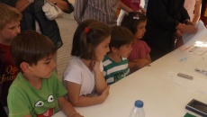 Los niños han sido los protagonistas este domingo en la última jornada de la II Feria Provincial de la Piedra y XIV Feria de la Piedra de Villamayor, que ha concluido con un concierto y un laborioso taller en piedra y caligrafía japonesa, donde los más pequeños han podido tallar su nombre en pequeñas esculturas, algo que ha resultado realmente atractivo entre los visitantes.